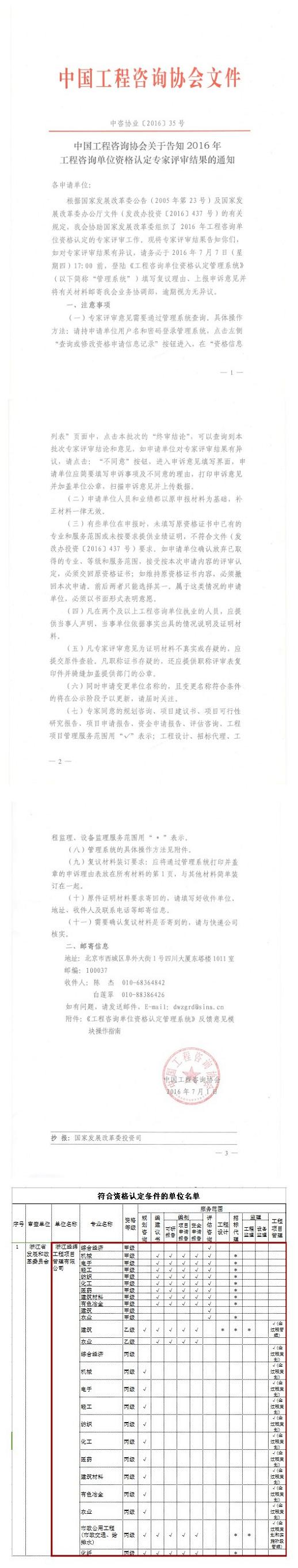 中國工程咨詢協(xié)會關于告知2016年工程咨詢單位資格認定專家評審結(jié)果的通知